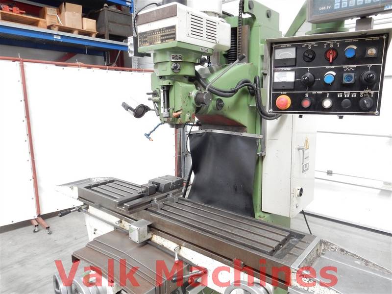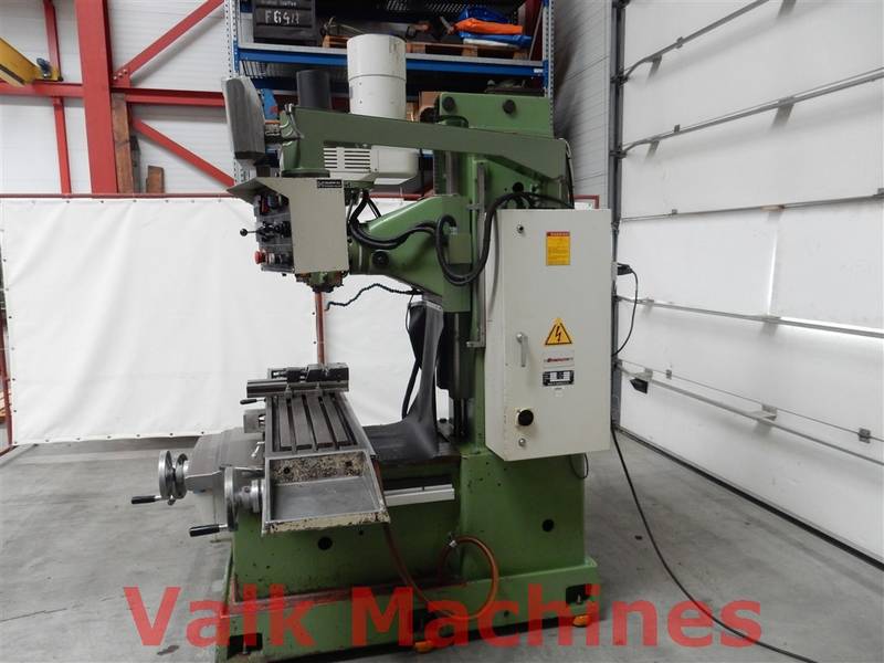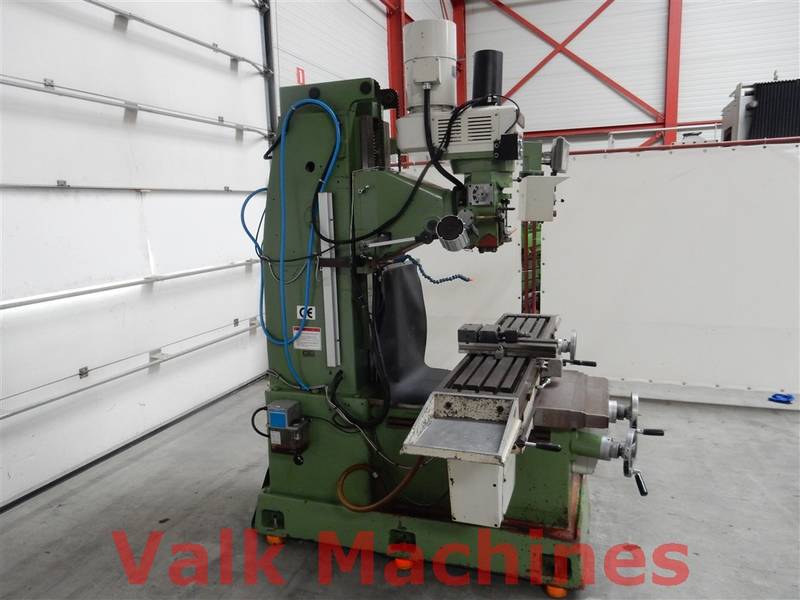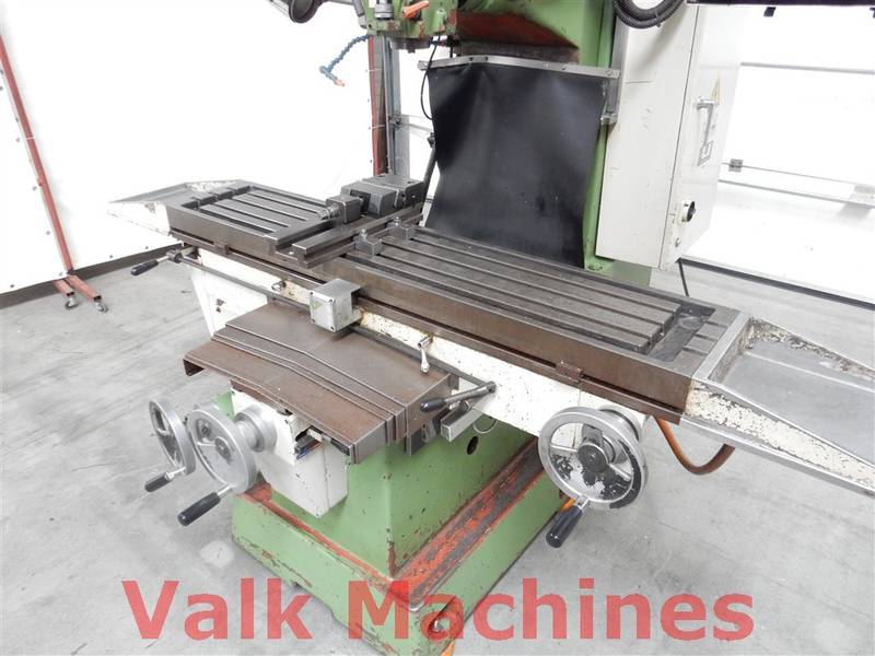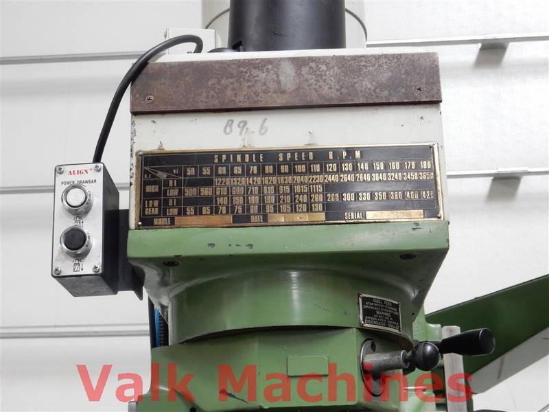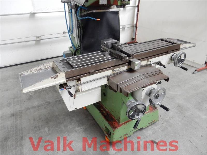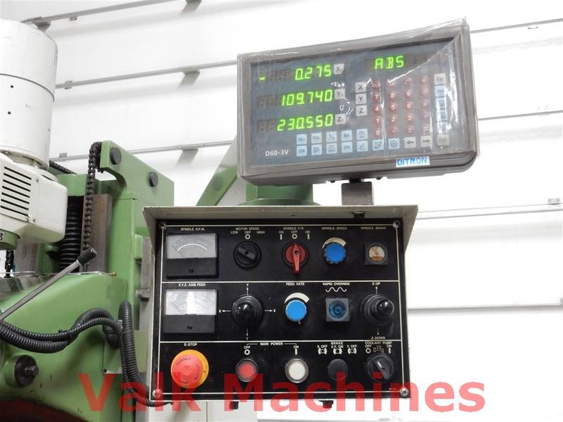 | Ausgestattet mit: | Digitale Auslesung 3 Achsen Vorschub auf alle Achsen Kuhlanlage Power drawbar Schraubstock Spindelkopf 360° verstellbar Bridgeport-Typ Fräse |